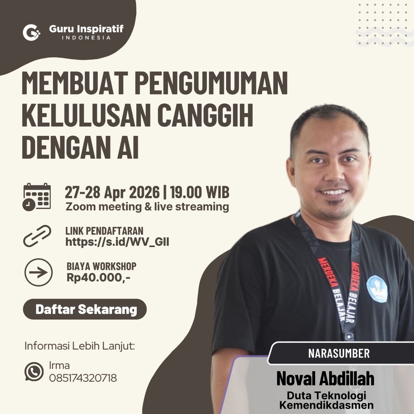 Sangat senang dan ilmunya bermanfaat bagi tugas saya. Narasumbernya hebat dan mantap! semoga barokah ilmunya dan sukses selalu...